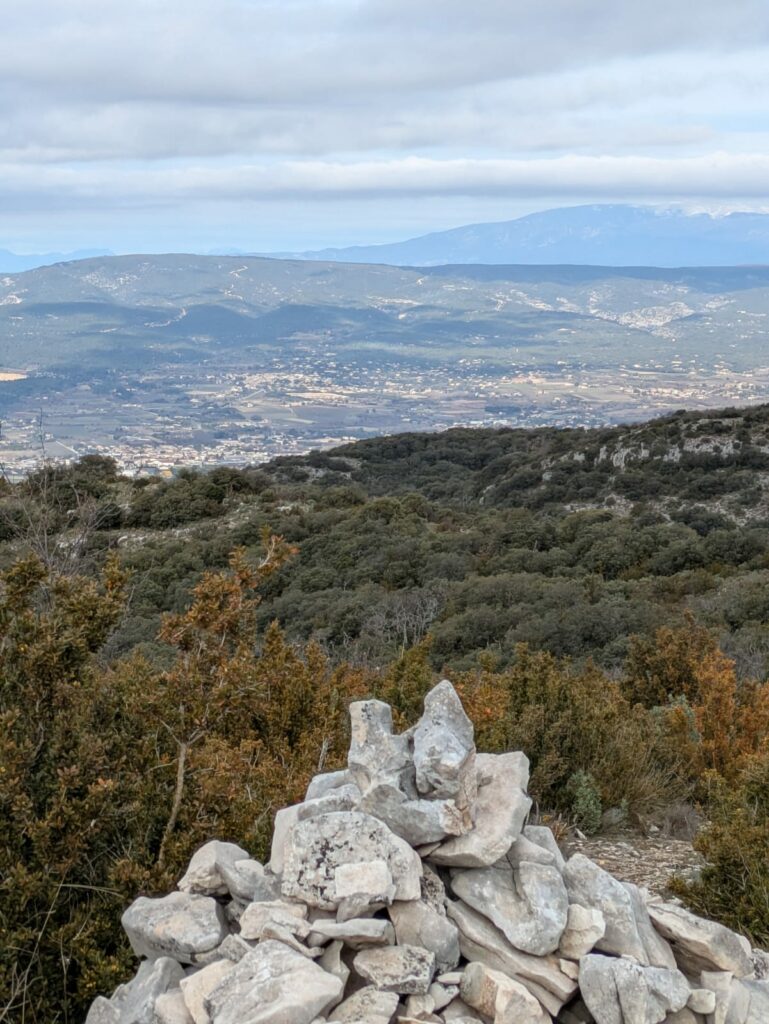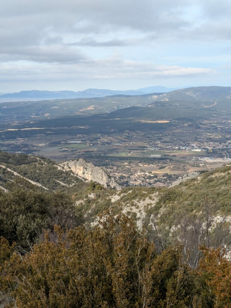 L’ambiance forestière a laissé place petit à petit à un milieu plus ouvert, peuplé de buis et de chênes verts, puis enfin à une végétation herbacée, lieu ancestral de pâturage des troupeaux de brebis. Les points de vue depuis ce sentier qui chemine sur la crête du massif sont époustouflants, tant la vue porte au loin de part et d’autre du Petit Luberon.