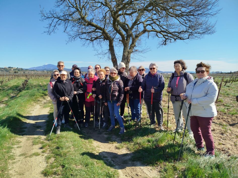 Et toujours une sortie conviviale ensoleillée, certes venteuse, mais assurant le ciel bleu aux 19 randonneurs, dans cette vallée de Ste Cécile et Cairanne…..