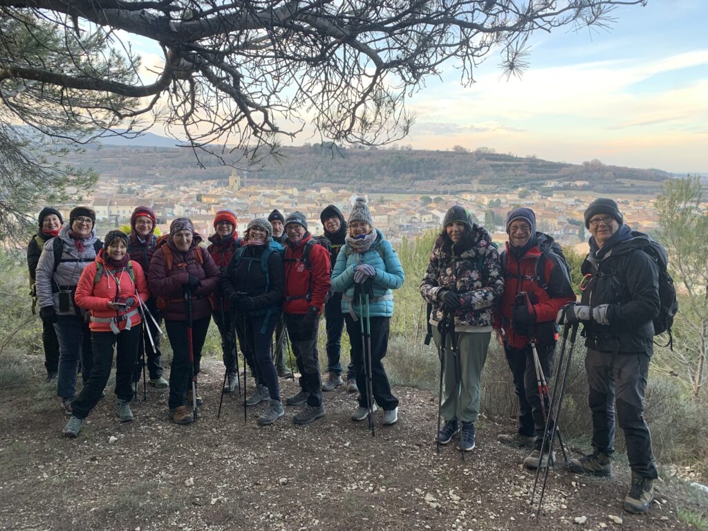 Nous étions 15 participants pour cette première randonnée de l’année 2026 au départ de Malemort-du-Comtat. Malgré un temps très hivernal au départ de Sérignan (températures glaciales et violent Mistral) le temps en arrivant sur Malemort était beaucoup plus clément car le vent ne soufflait pas là-bas et un beau soleil hivernal nous a accompagnés toute la journée.