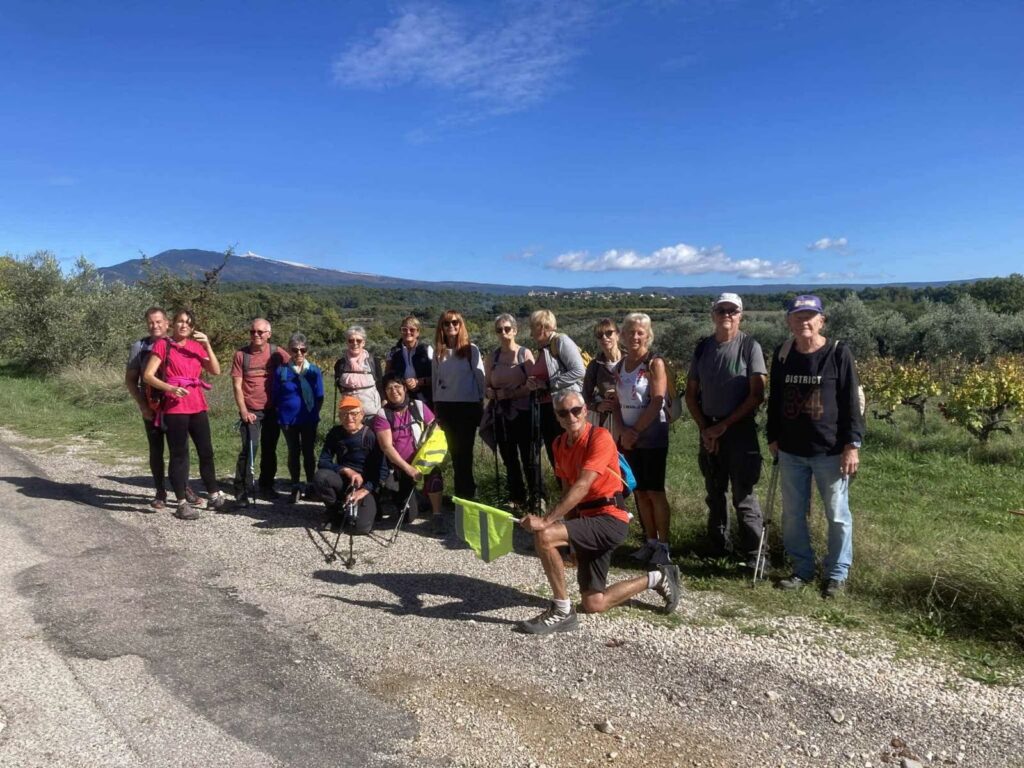 18 marcheurs ont participé à cette randonnée au départ de Malaucène.Ciel couvert et températures très douces pour cette balade automnale avec les Dentelles de Montmirail à l’horizon.